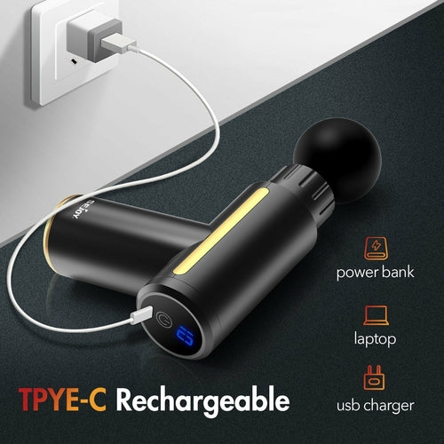 - Compact size massage gun gives you powerful targeted treatments, great for traveling.